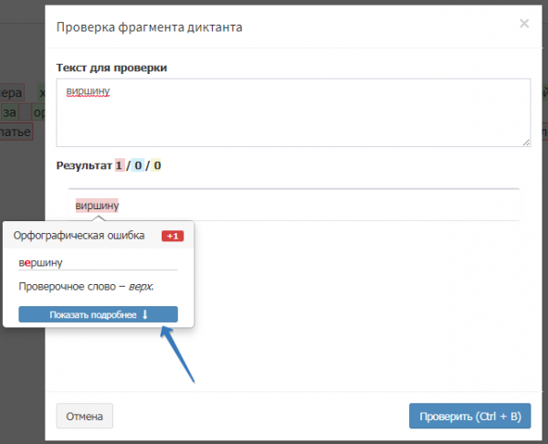 2. Нажмите на слово, в котором есть та же ошибка, что и у текущего (1). Наведите курсор на нужную ошибку, появится всплывающий номер этой ошибки, который нужно запомнить для последующего использования. Повторите то же самое для всех однокоренных слов (3).